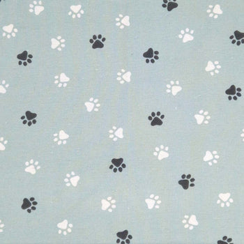 Sold out - Paw Prints On Duck Egg - Cotton Rich Linen Look