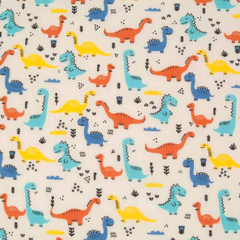 Sold out - Happy Dinosaur on Cream - Polycotton Fabric