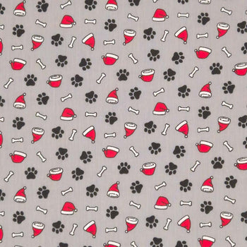 Sold out - Christmas Hat, Paw and Bone - Grey Polycotton
