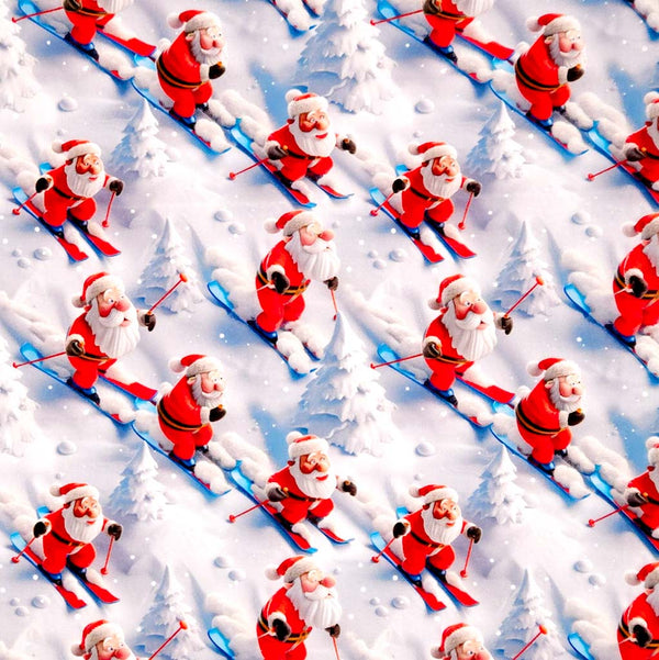 3D Skiing Santa by Little Johnny - Christmas Cotton Fabric