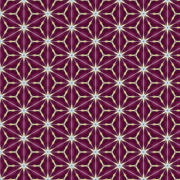 Amaryllis in claret is part of the Kaleidoscope collection, inspired by the playful shapes and colors generated by the vintage toy. The collection celebrates the perfectly imperfect patterns created by light as it passes through bits of colored glass and is reflected by the object's internal mirrors. The sixteen-print collection features bold, geometric designs of varied scales and richly textured blenders that hit every note on the colour spectrum.
