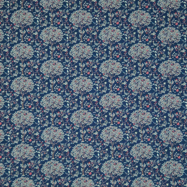 A gorgeous design featuring winding trees of sage surrounded by red berries, on a rich teal pima cotton lawn.
