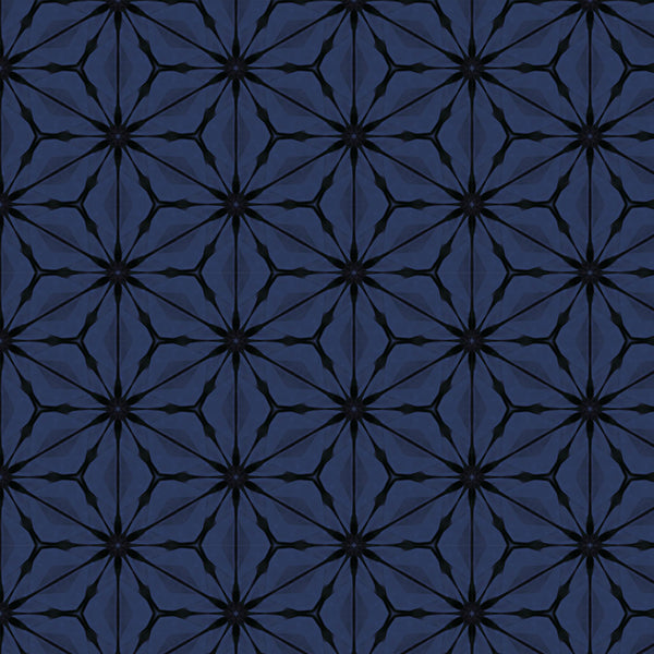 Bloom Nocturnal is part of the Kaleidoscope collection, inspired by the playful shapes and colors generated by the vintage toy. The collection celebrates the perfectly imperfect patterns created by light as it passes through bits of colored glass and is reflected by the object's internal mirrors. The sixteen-print collection features bold, geometric designs of varied scales and richly textured blenders that hit every note on the colour spectrum.