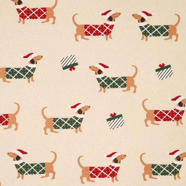 Christmas Dachshunds - 100% Cotton Fabric - Natural
