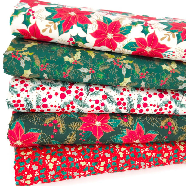 Holly & Poinsettia - Cotton Fat Quarter Bundle