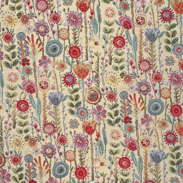A stunning colourful flower design printed on a cotton rich, new world tapestry fabric.