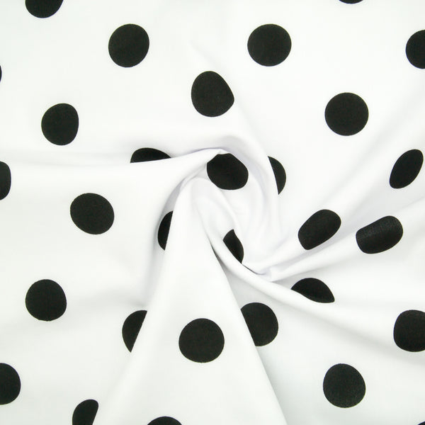 Large Black Spots on White - 25mm Spot - Polycotton