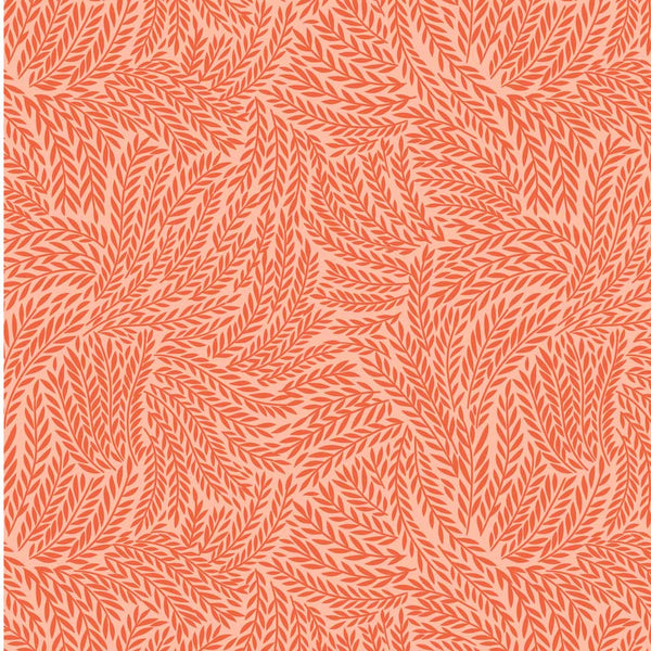This mesmerising design features swirling vines of tangerine orange on a gorgeous light peach 100% cotton fabric. Bright and bold, perfect for your creative crafts.