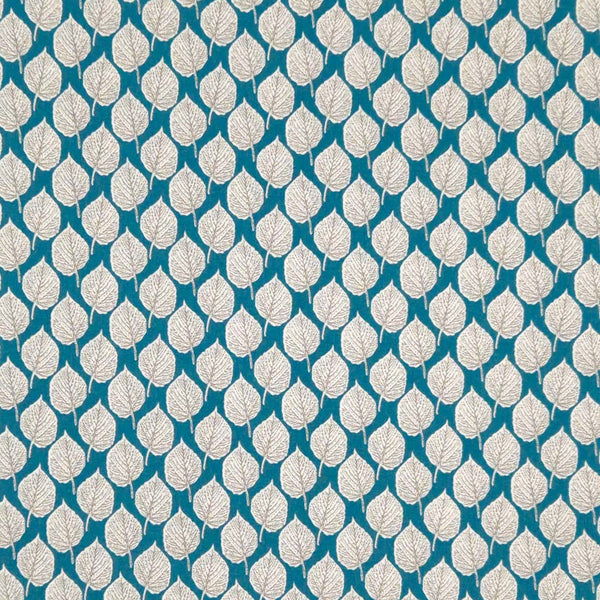 This flattering viscose design shows gentle leaves on a beautiful teal background creating a perfect autumnal look.
