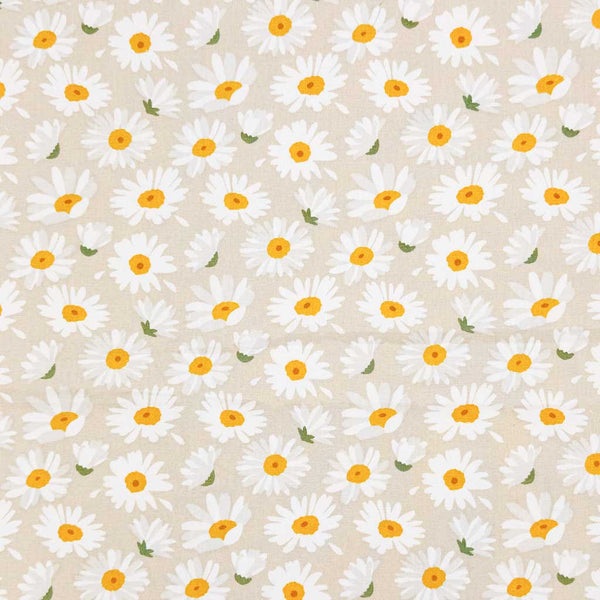 A beautifully simple design of falling daisies, printed on a beige 100% cotton fabric; ideal for most sewing and dressmaking projects.