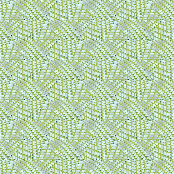 Shimmer In Seafoam is part of the Kaleidoscope collection, inspired by the playful shapes and colors generated by the vintage toy. The collection celebrates the perfectly imperfect patterns created by light as it passes through bits of colored glass and is reflected by the object's internal mirrors. The sixteen-print collection features bold, geometric designs of varied scales and richly textured blenders that hit every note on the colour spectrum.