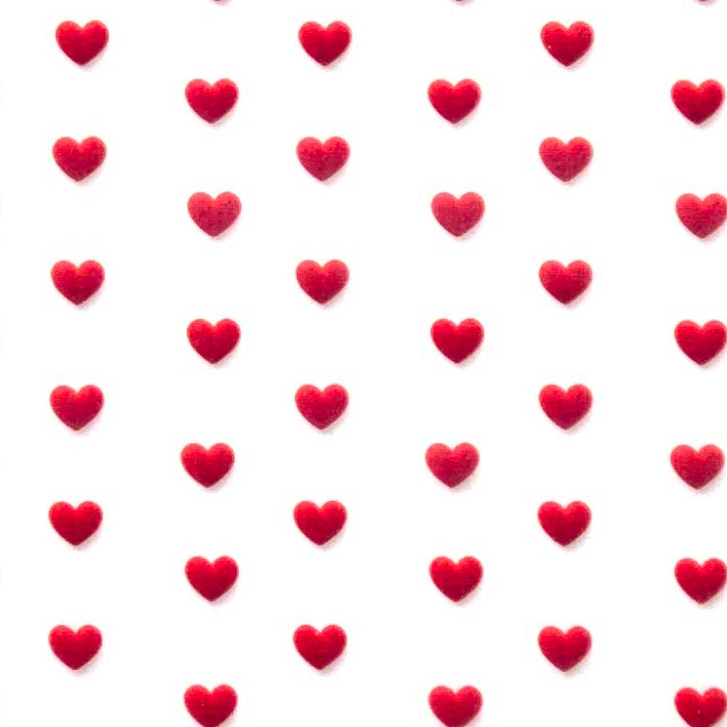 Pattern of red hearts on a white polycotton fabric with a ruler at the bottom.