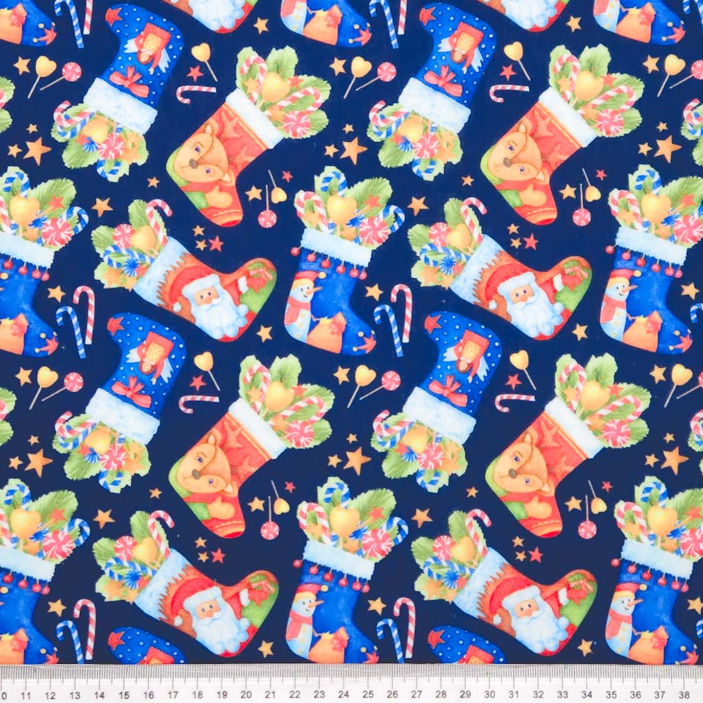 Christmas Stockings & Candy Canes - Navy - Polycotton