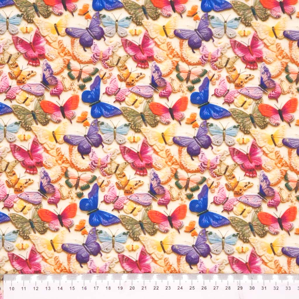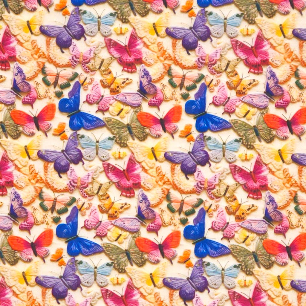 The intricate design showcases colourful butterflies dancing across a soft cream background, creating a cheerful focal point for any project.