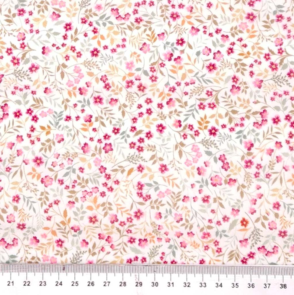 Ditsy Pink Flowers & Leaves - Floral Polycotton