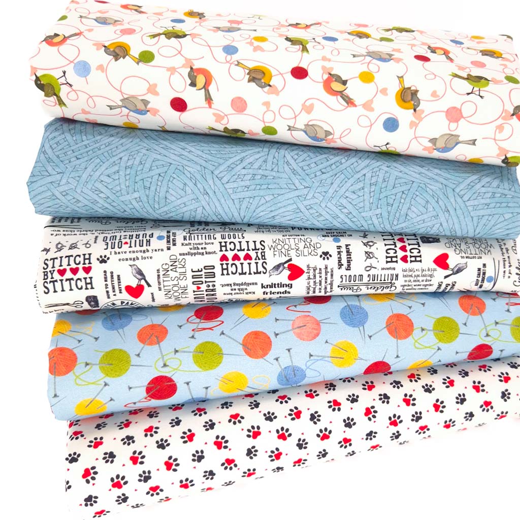 Mix & Match across all fat quarter bundlesCombine your love of knitting and your feline friends with the Knit 1, Purr 2 Fat Quarter Bundle!