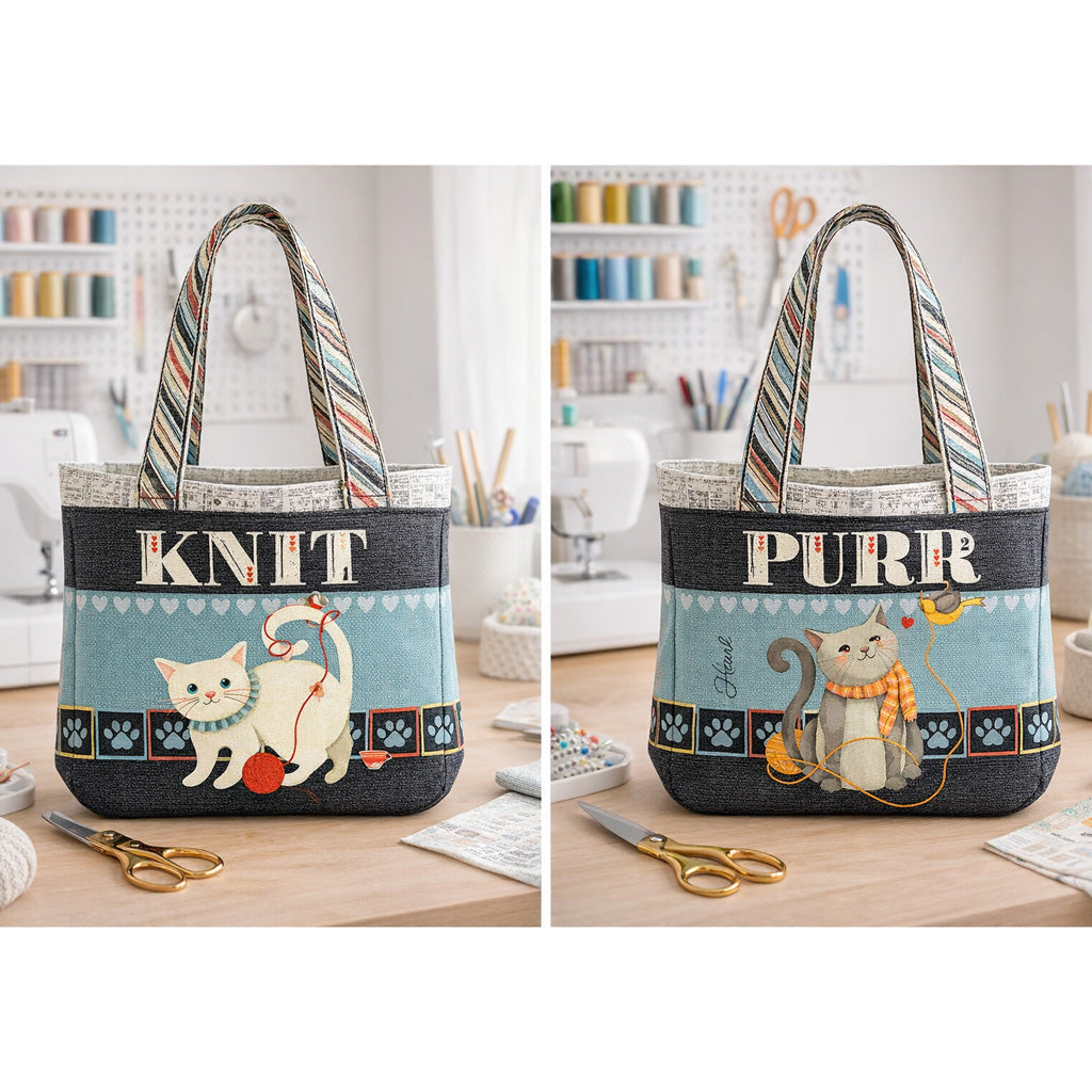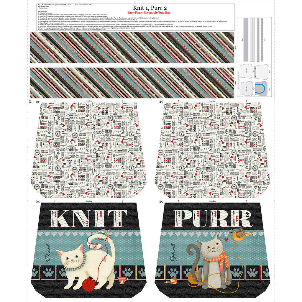 Knit 1, Purr 2 Tote Bag Panel - Sew Your Own