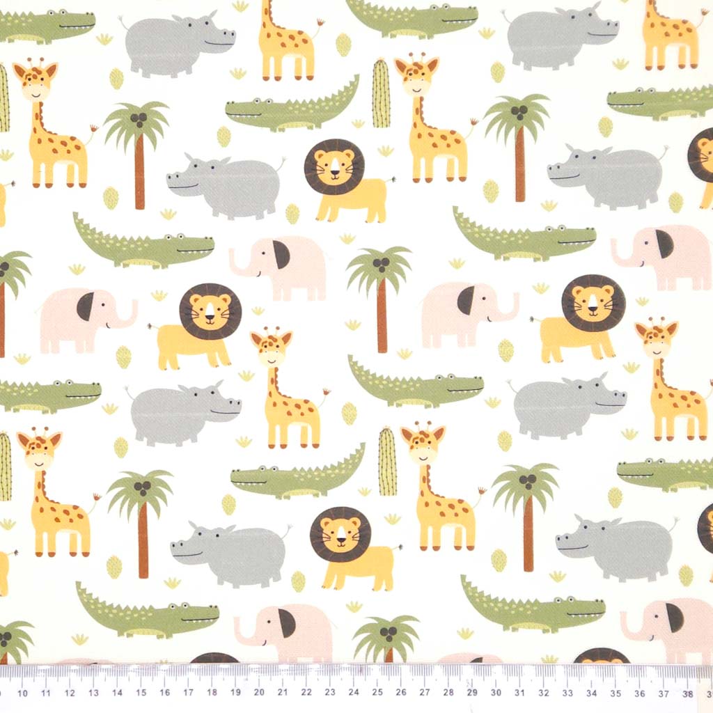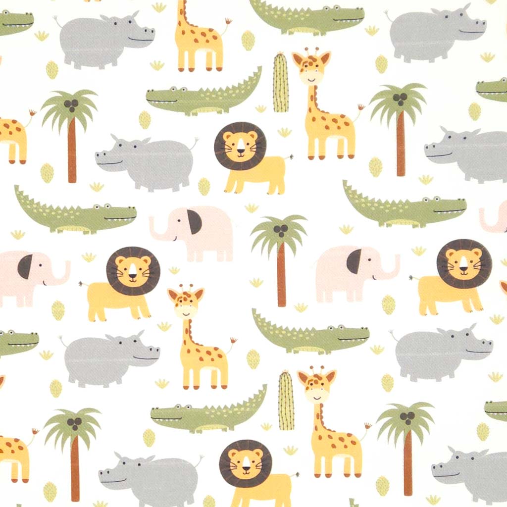 Bring the wild to life with this vibrant Animal Safari cotton canvas fabric! Featuring lions, hippos, giraffes and elephants