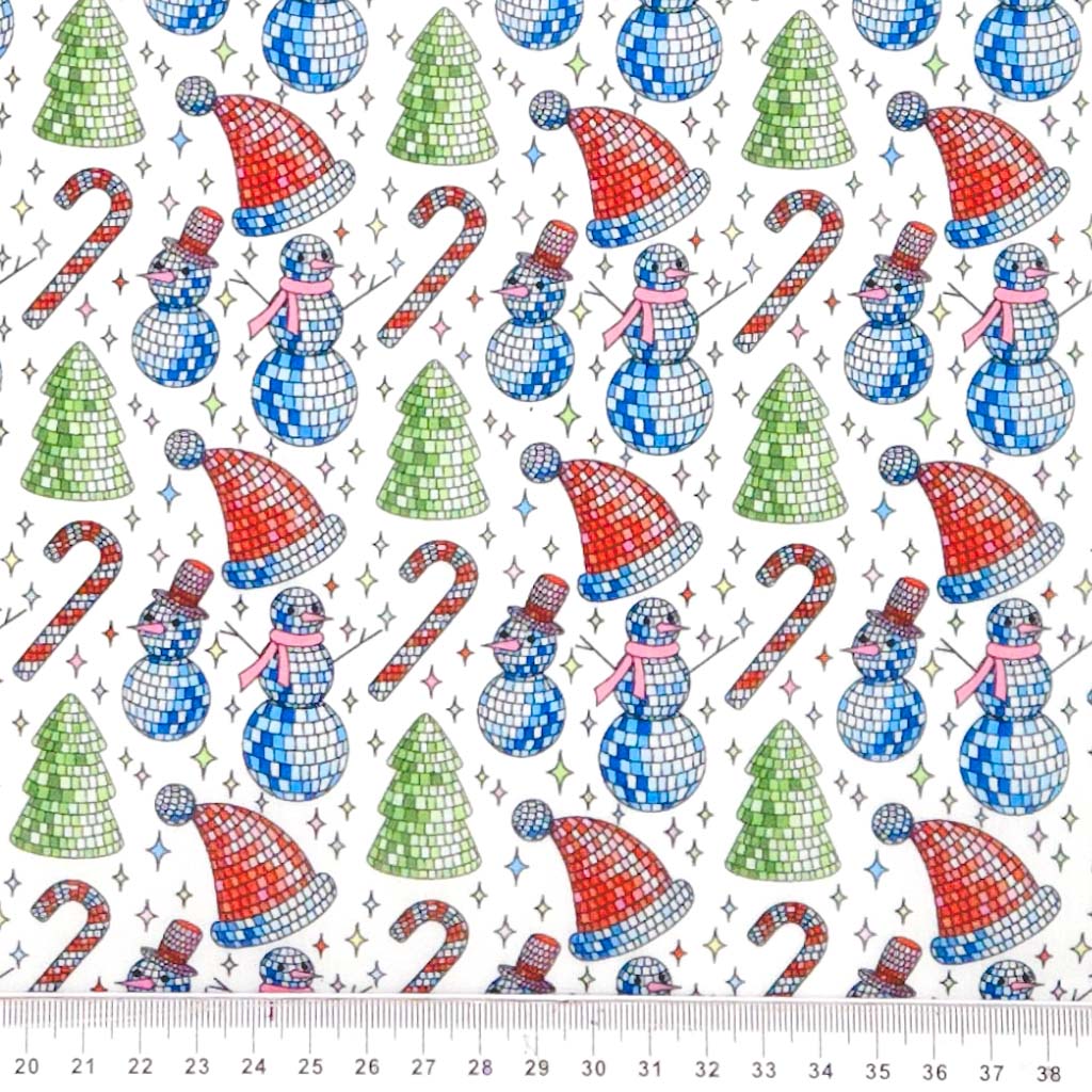 Disco Snowman, Tree & Santa Hat - Christmas Polycotton Fabric