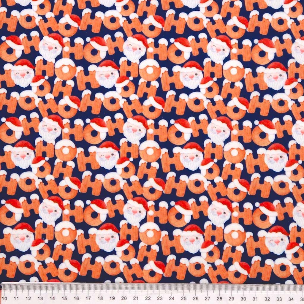 Bring a splash of festive fun to your holiday projects with our Hohoho Santa fabric in a rich navy shade. Featuring a cheeky winking Santa design.