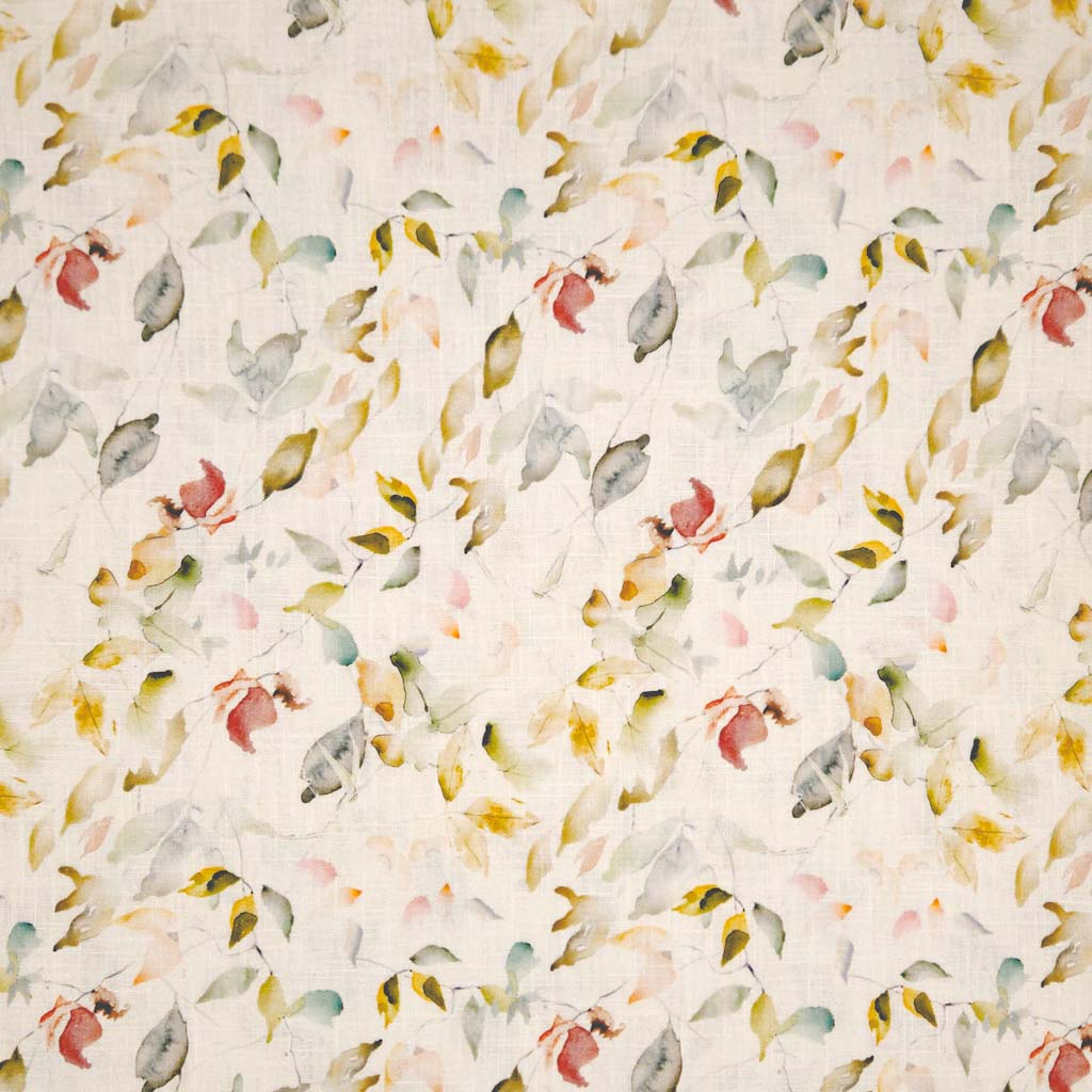 This gorgeous 100% linen features multicoloured fragile leaves painted across a calming white background. A timeless design for your crafts.