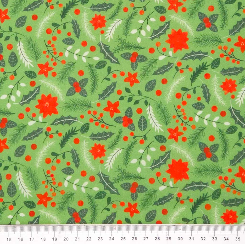 Poinsettia and Holly - Christmas Polycotton Fabric
