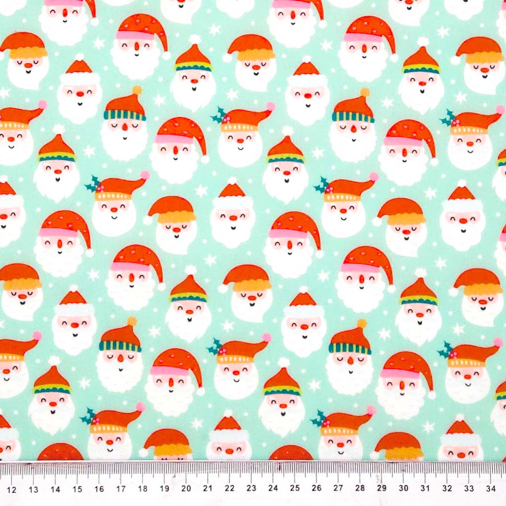 Smiley Santa - Christmas Polycotton Fabric